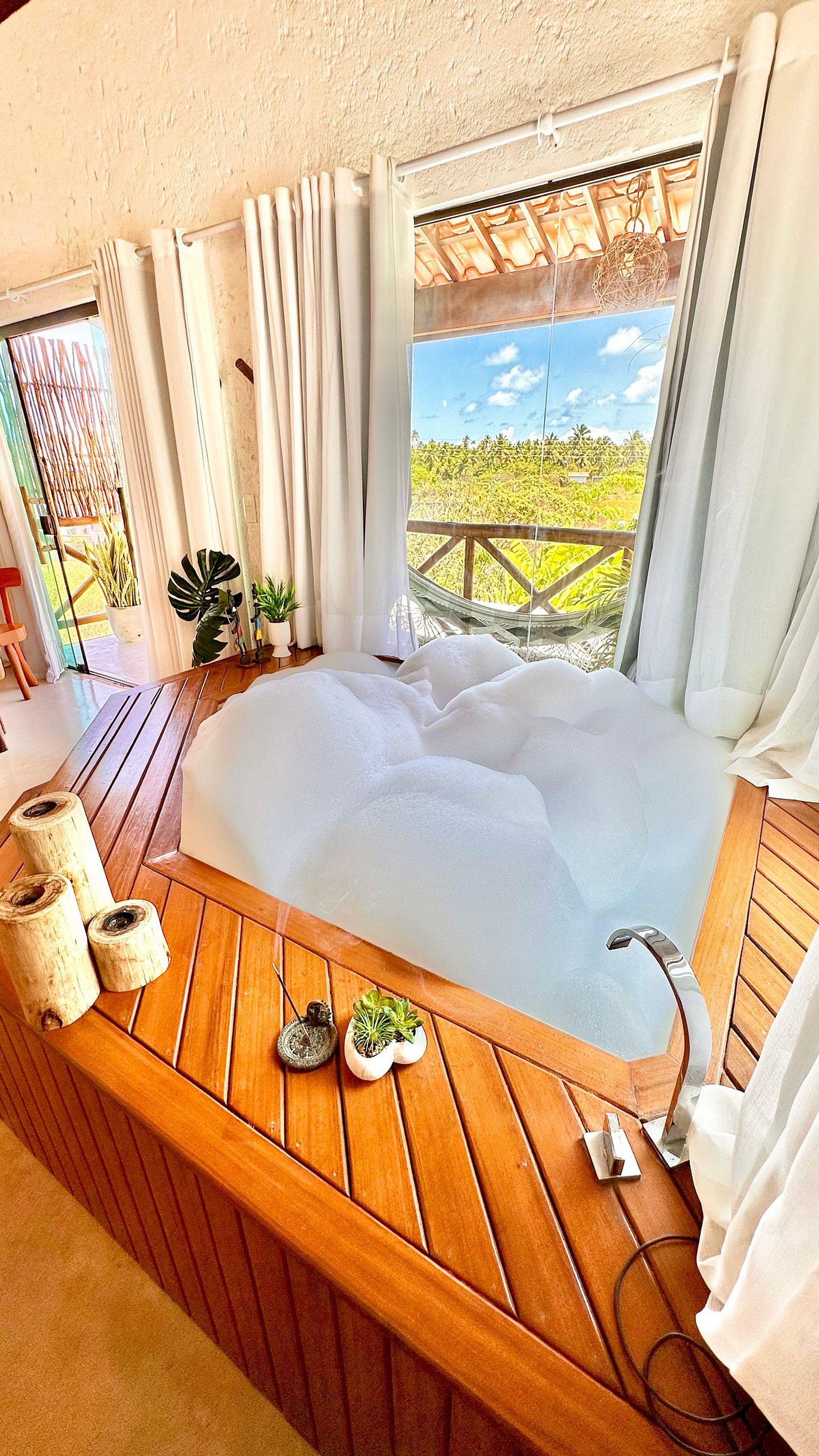 Bangatacho es un conjunto de encantadores bungalows ubicados exactamente a 380m de Praia do Patacho, el corazón de la ruta ecológica de Milagres-AL, la ruta más paradisíaca del país, apodada las Maldivas brasileñas. Estamos a pocos kilómetros de las famosas playas de Milagres, Toque, Marceneiro, Lage, Tatuamunha y los impresionantes ríos de Tatuamunha (un santuario ecológico para el manatí) y Manguaba. Somos una de las pocas propiedades en Brasil con alojamientos tematizados que te permiten vivir diferentes experiencias sensoriales, cada una con un exclusivo jacuzzi o bañera y el estilo que mejor se adapte a ti. La propiedad cuenta con cuatro alojamientos INDEPENDIENTES con entradas privadas que combinan la naturalidad de lo rústico con el refinamiento, el lujo y la sofisticación, brindando el máximo confort, intimidad y privacidad. Todos los alojamientos cuentan con Smart TV con acceso a varios canales abiertos y cerrados, Wi-Fi de excelente calidad (200mb), aire acondicionado split, cocina totalmente equipada y ropa de cama y baño. Ofrecemos, opcionalmente, el servicio de desayuno, que se puede servir de dos formas: a la carta, en un restaurante asociado cercano, o mediante cesta entregada en el alojamiento elegido. También ponemos a tu disposición sillas de playa, sombrillas gratuitas y contamos con algunos servicios exclusivos de decoración romántica, paseos (en balsa, buggy y a caballo) y masajes terapéuticos (todo con coste adicional), para que tu experiencia sea aún más inolvidable.